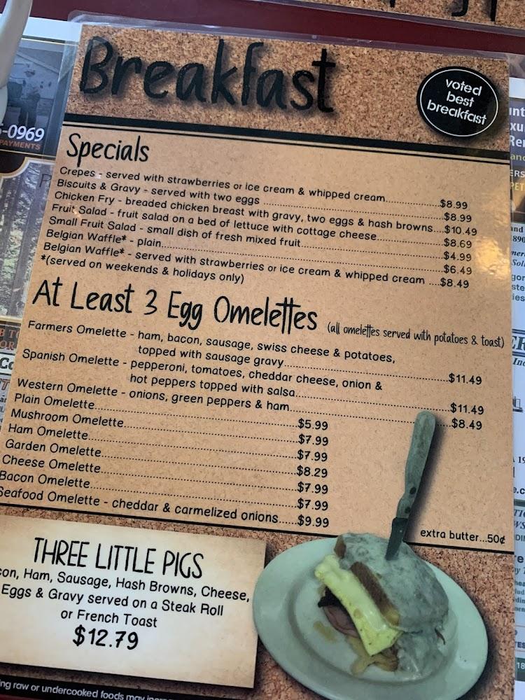 Popular dishes include bone-warming options like eggs Benedict, chipped beef, and delectable French toast. There’s also a variety of sandwiches that cater to different tastes, from ham and Swiss to corned beef.